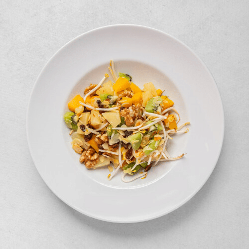 z chrupiącymi kiełkami, ananasami, brzoskwinią, kiwi, orzechami, rodzynkami i płatkami migdałów250 g
